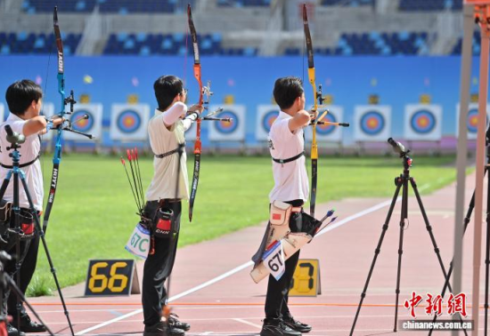 8月21日,吉林長春,運動員參加比賽。 當(dāng)日,2025年全國射箭U16、U18錦標(biāo)賽在長春開賽,中國各地96支射箭隊的721名運動員張弓搭箭,一較高下。 中新社記者 張瑤 攝