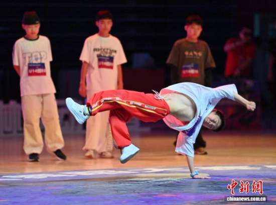 9月6日,吉林長春,舞者在U14組比賽中。當天,2025中國·吉林省體育舞蹈公開賽暨街舞國際邀請賽在長春開幕。來自中、韓等國家的千余名選手同臺競技,賽事涵蓋霹靂舞、拉丁舞等多個項目。中新社記者 張瑤 攝