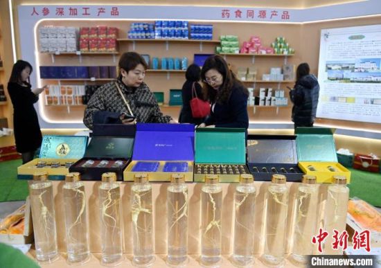 消費(fèi)者在2024長春國際醫(yī)藥健康產(chǎn)業(yè)博覽會上選購人參產(chǎn)品。張瑤 攝