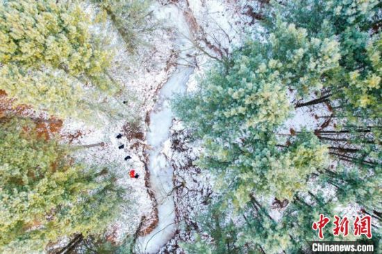 1月1日,吉林通化,民警沿著冰河在密林深處巡邏。依震龍 攝